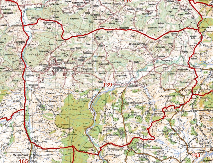 Koło Łowieckie „Grodzisko” w Raciechowicach prowadzi gospodarkę łowiecką w wydzierżawionym obwodzie nr. 139. Obwód nasz łączną swą powierzchnią obejmuje ok. 5351 ha powierzchni, z czego las stanowi ok 1243 ha, 218,35 ha powierzchni obwodu stanowi grunt nadleśnictwa Myślenice. Po wyłączeniach, o których mowa w art. 26 ustawy z 13.X.1995r. do czynnego użytkowania pozostaje nam obszar 4253 ha.